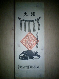 犬の方は実は狼らしくて、奥多摩の御嶽山(おんたけさん)の狼奉った神社の札らしいです。